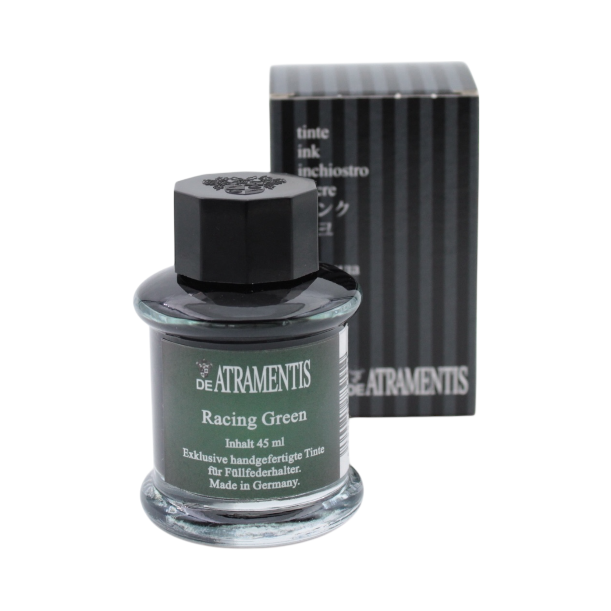 Exklusive handgefertigte Tinte für Füllfederhalter. Farbe: Racing Green, Inhalt: 45 ml. Die Tinte ist für alle Füllfederhalter geeignet. Die Tinte entspricht den Anforderungen der EN71-3.